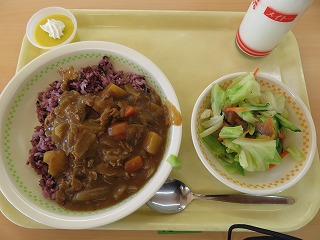 「明日はハロウィンのメイクをするんだ❤」とある子がニコニコしながら話してくれました。31日はハロウィン。給食では「紫米」「かぼちゃ」を食材に取り入れ、見た目も彩りからもハロウィンを楽しめる献立が登場しました。とっても舌触りのなめらかな手作りプリン、裏ごししたかぼちゃをルゥに加えた濃厚なカレーを味わいました。「プリン、めっちゃうまかった!」「カレーも最高!」と多くの子が完食!給食センターは朝から大変だったようですが、おかげでおいしいハロウィン給食を楽しむことができました。