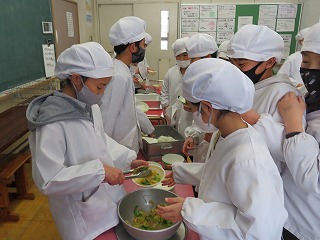 1/26、1/27両日の給食は、6年生が家庭科の学習「1食の献立を考えよう」でそれぞれが考えたもの中から、栄養士が厳選した2食が提供されました。どの献立もとてもよくksんgせられていたので、栄養士の先生も苦労したそうです。
