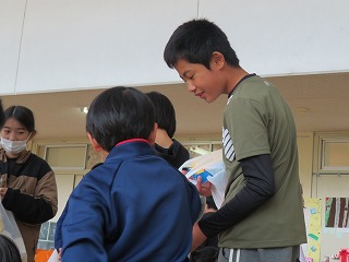 始まると早速6年生が店先にやってきて、やりとりをしている様子に、さらに相手意識の高まりが感じられました。お店は次々と完売御礼となり、まだ営業中のお店に手伝いに入る姿もありました。「とても楽しかった!」「6年生が楽しんでくれて、うれしかった」とびっきりの笑顔で思いを口にしていました1年生、達成感が漲っていました。