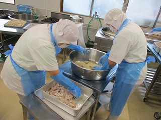手作りの特製ソースカツは「カツでを食べて受験に勝つ!」ための活を、そしてかみなり汁は、「雷の如く熱く燃えて挑め!」という思いを込めています。給食センターの調理員さんたちもいつも以上に力を合わせて調理に臨み、しっかり闘魂を注入しました。今回はそんな調理の様子を画像でもお届けします。