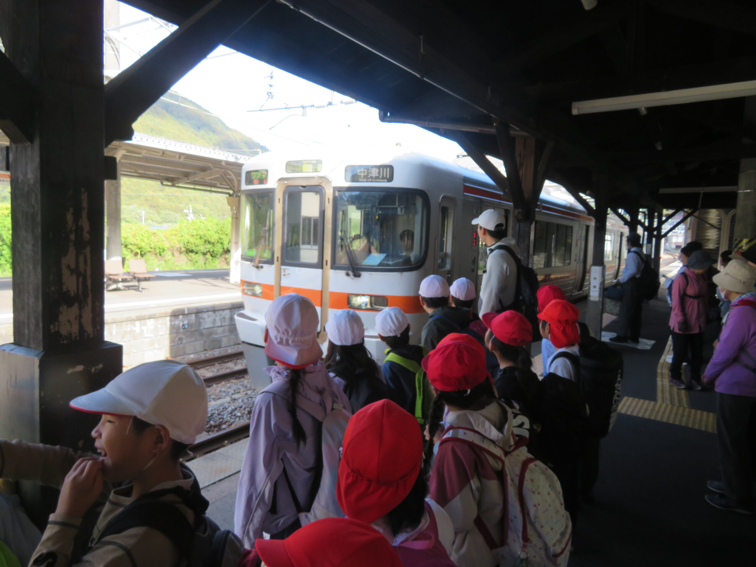 藪原駅から木曽福島駅までもいちど小中学校の皆さんと一緒に電車に乗り、その後、路線バスで黒川方面へ。バスを下車してから、道祖神や馬頭観音を見ながら木曽おもちゃ美術館まで歩きました。