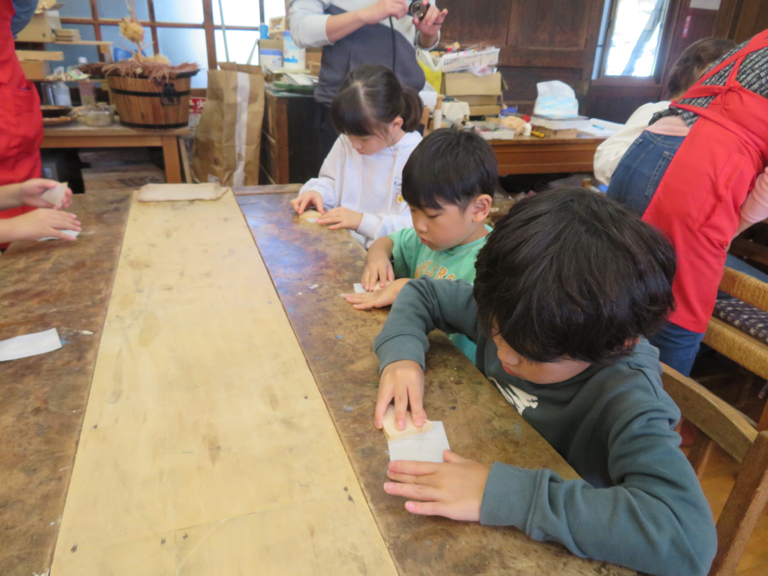 美術館では、キーホルダー作りの体験をしたり、木のお