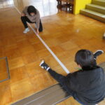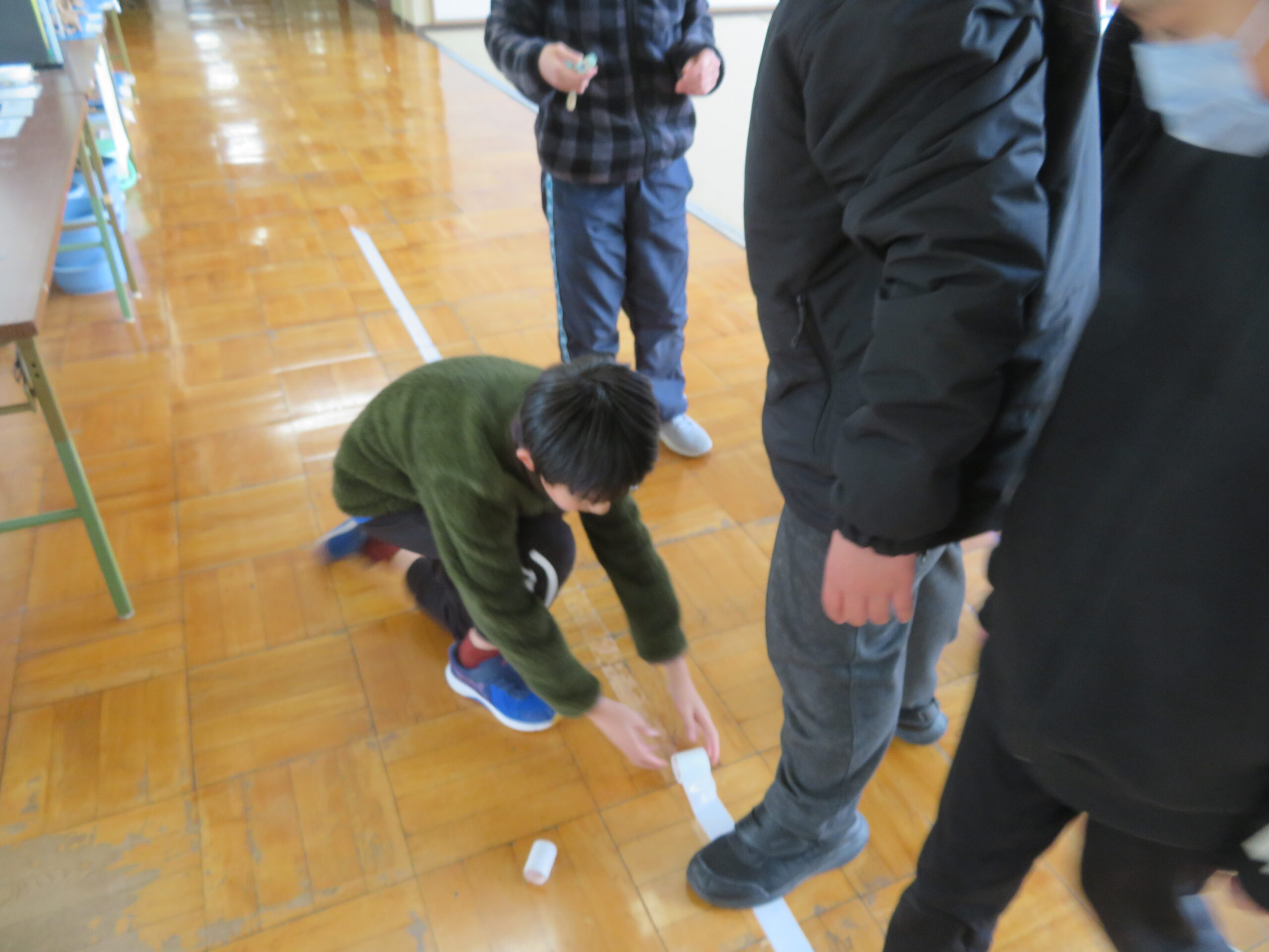 廊下に貼ってあった白線のテープの貼り替えは、時間内にできなかった分を休み時間まで使ってきれいに貼り替えてくれていました。