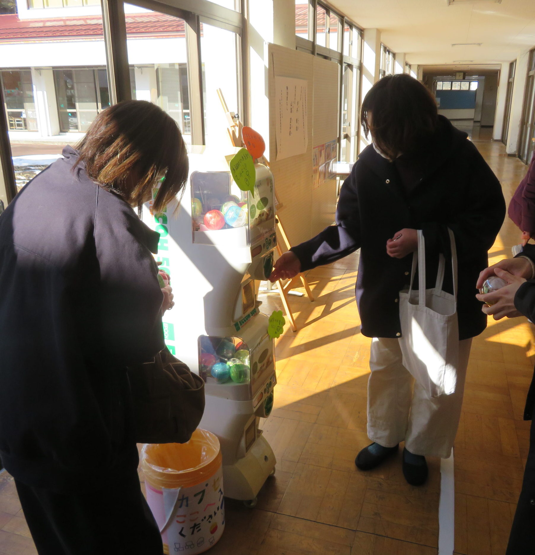 4年生は、総合的な学習の時間に取り組んだ、木に関わる学習の一環で作成したガチャガチャを昇降口に設置しました。多くの保護者の皆さんに回せてもらえたようです。